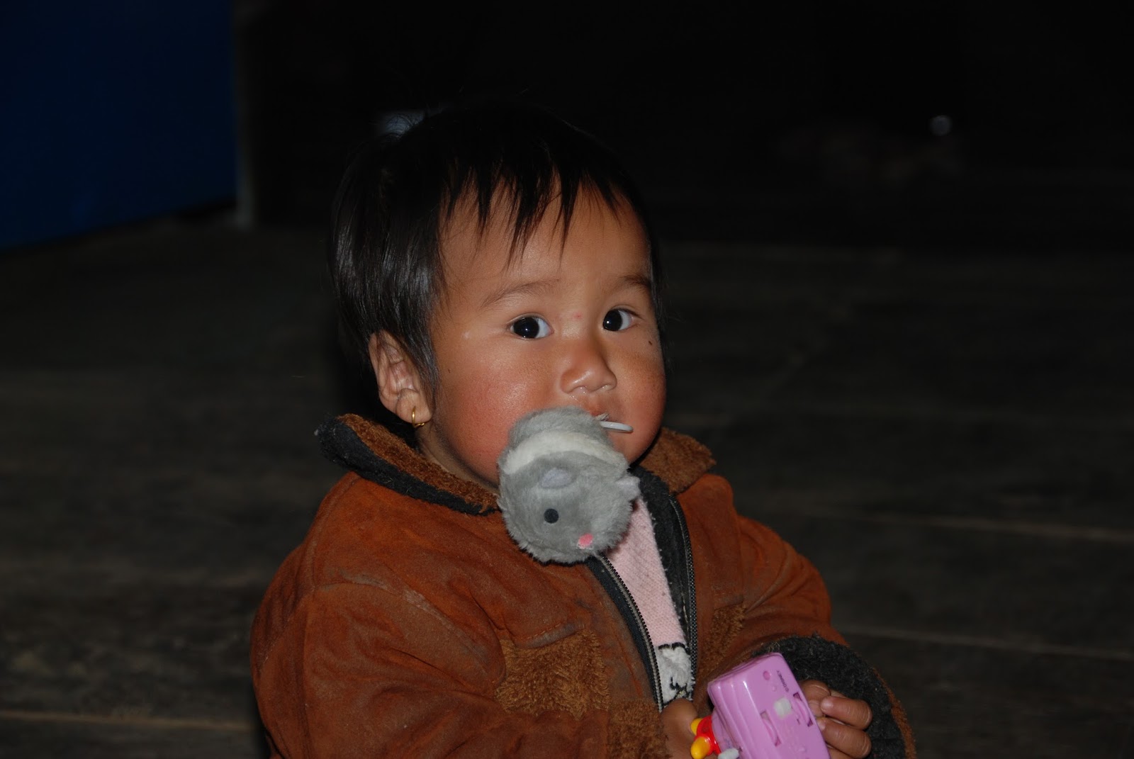 Tej nous invite à rentrer pour prendre le thé. Je vais chercher des cadeaux pour le babou (bébé), la nani (sa petite sœur) et la didi (sa grande sœur). La grande sœur s'occupe bien du bébé et comme j'ai donné une souris qui vibre lorsque l'on tire sur le cordon... elle attrape le fou rire en mettant le bout du cordon dans la bouche du bébé. Je n'ai pas pensé à faire une petite vidéo mais c'était vraiment drôle. De ce fait, nous avons nous aussi eu le fou rire jusqu'aux larmes...